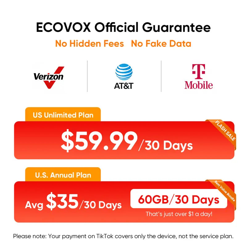 No contracts, no commitments. Get connected the moment you turn on your ECOVOX Portable WiFi.
